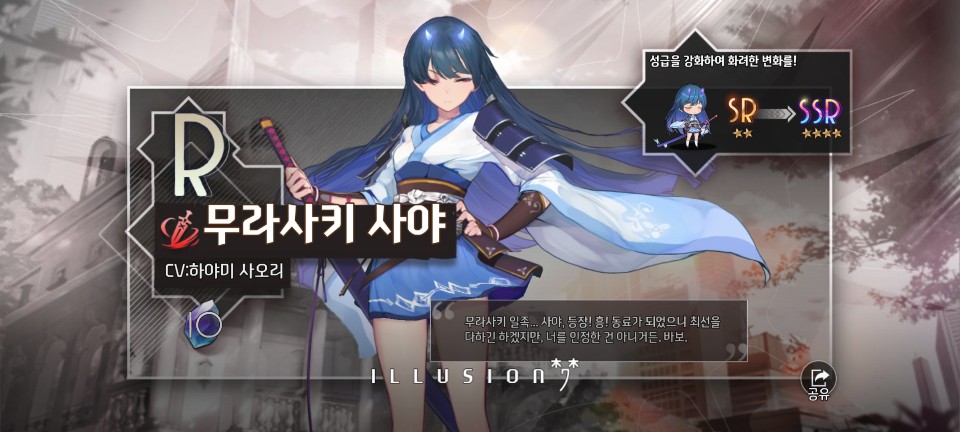 또다시 SSR급 미소녀가 등장했습니다!! 이제 SSR급 세명과 SR급 두 명으로 팀 구성이 가능해졌습니다.