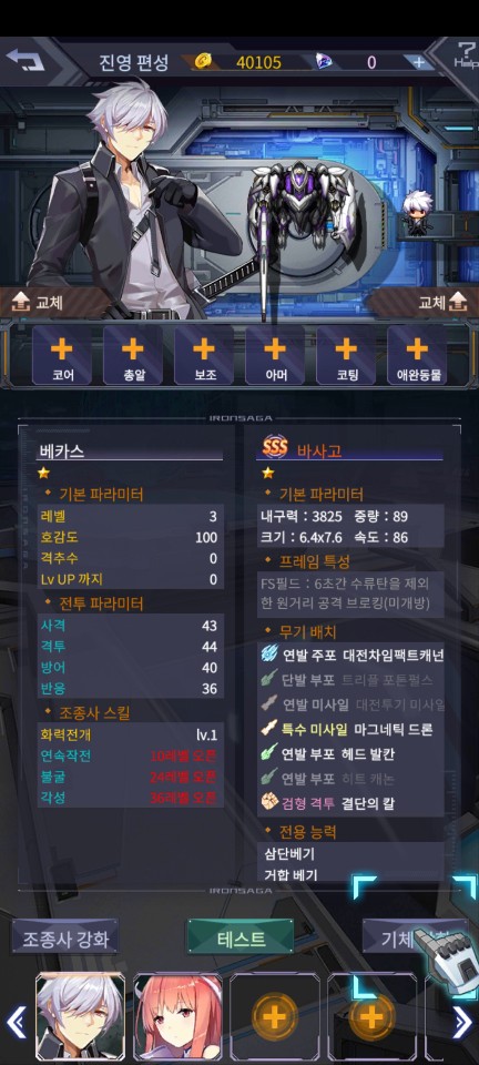 또한 기체강화를 통해 기체를 업그레이드도 해줄 수 있습니다.