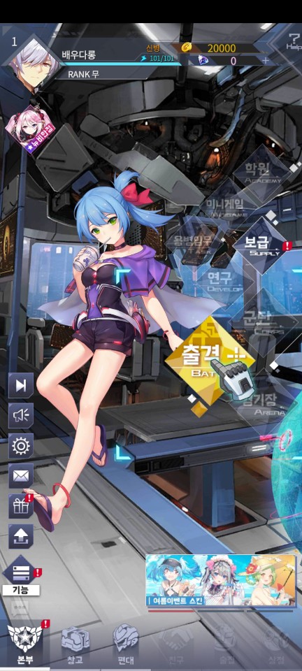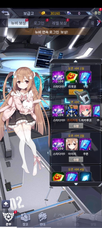 본부 화면에서 조작이 가능하게 되면 각종 보상들을 우선 획득하도록 합니다.