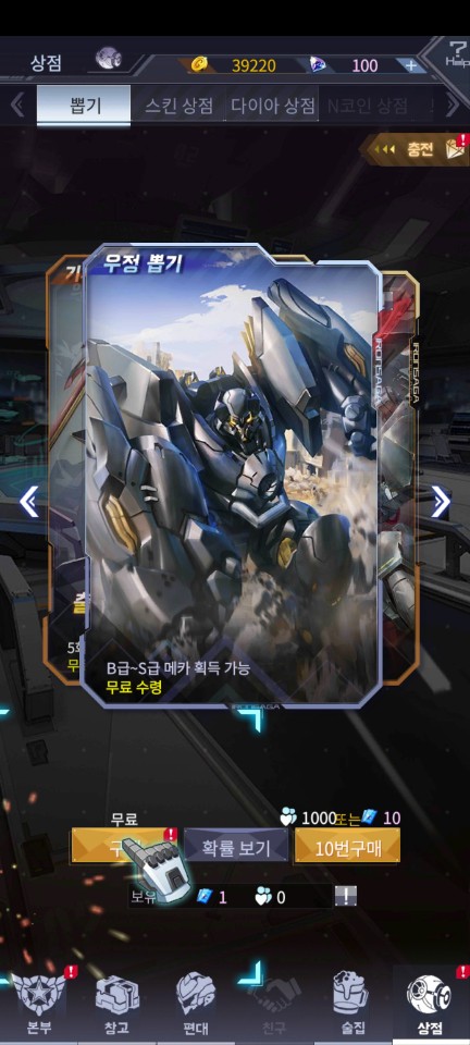 기체도 구매해야 합니다. 기체도 첫 번째는 무료로 구매하였습니다.