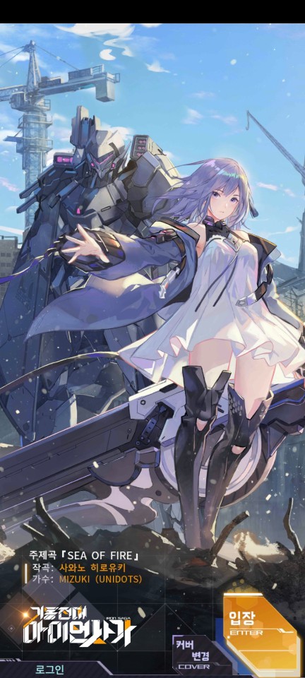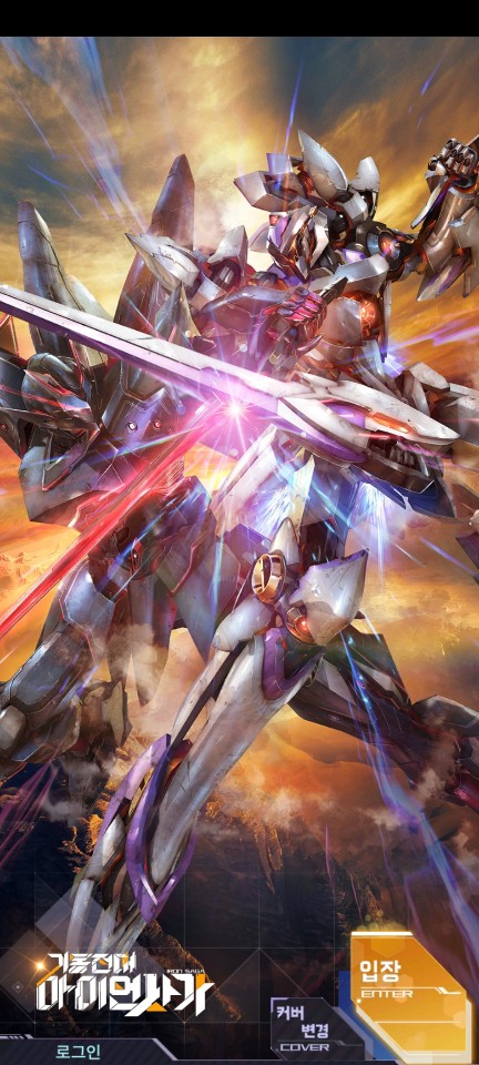 기동전대:아이언사가를 시작하면 멋진 일러스트의 시작 화면이 등장합니다.
