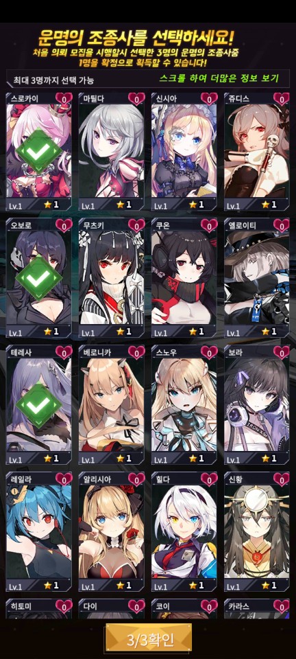 처음 게임을 시작하면 운명의 조종사를 최대 3명까지 지정할 수 있는데 후에 술집에서 조종사를 모집할 때