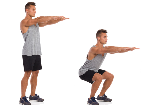 ※ 운동 강도를 높이려면 덤벨을 들고 스쿼트를 해봅시다.