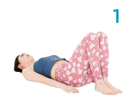 ○ 바닥에 발바닥을 붙이고 무릎을 구부린 채 눕습니다.