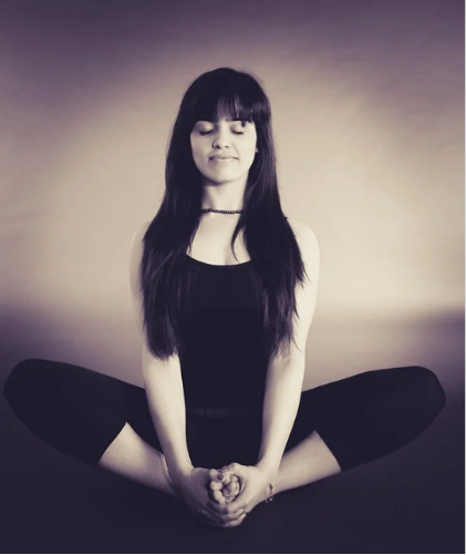 ① 먼저 바닥에 앉아 두 발로 버터플라이 자세를 취합니다.