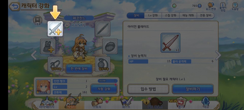 캐릭터들은 전투에서 얻은 장비들을 장착하고 강화함으로써 전투력을 올려줄 수 있습니다.