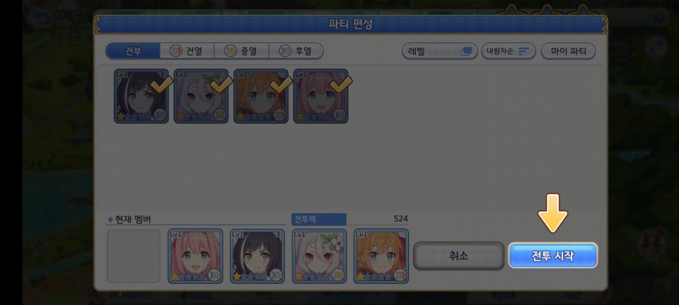 진행이 가능합니다. 4성이상의 캐릭터를 사용하면 어떨지 궁금해집니다.
