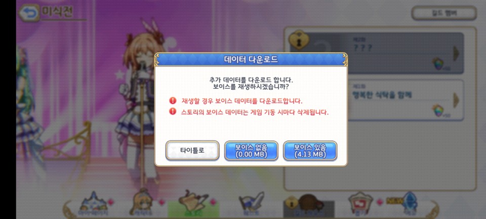 6GB의 추가 데이터를 다운로드했는데 길드 스토리에서 보이스를 듣고 싶으면 또다시 추가 다운로드가 필요합니다.