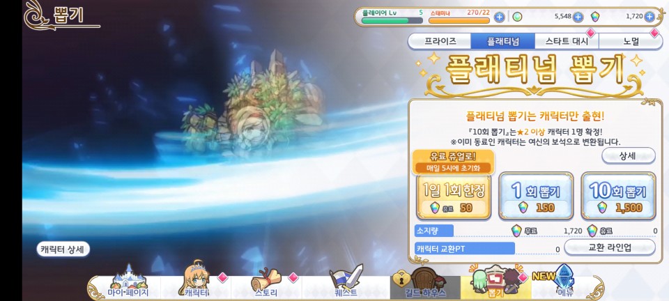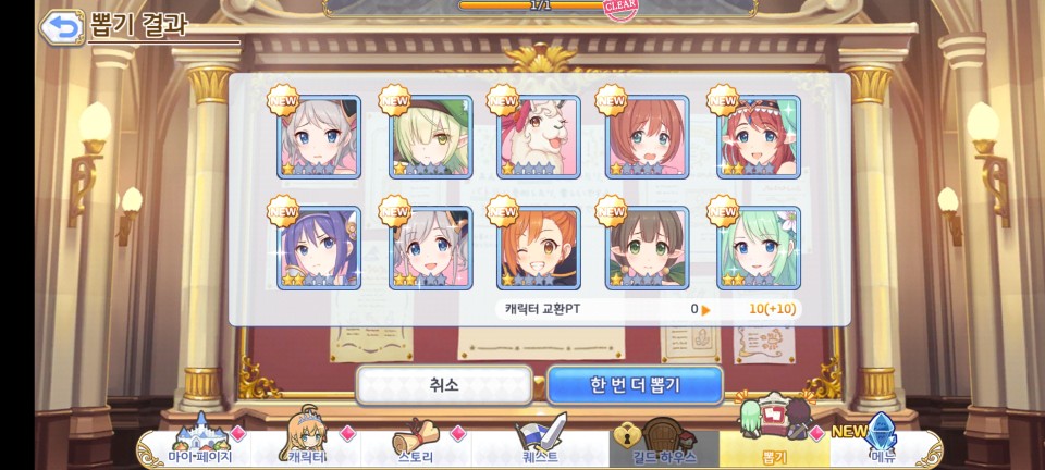 10회 뽑기를 하면 2성이 확정이었습니다. 5성 캐릭터까지 있는데 2성은 너무 짠 거 아닌가 싶네요.