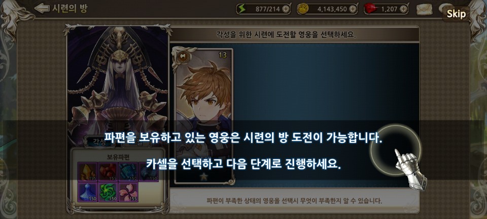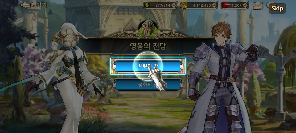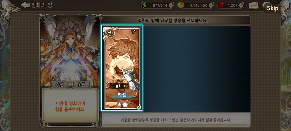 시련의 방에서 전투를 통해 한 등급 위의 영웅을 획득하고, 정화의 방에서 획득한 영웅을 사용할 수 있게
