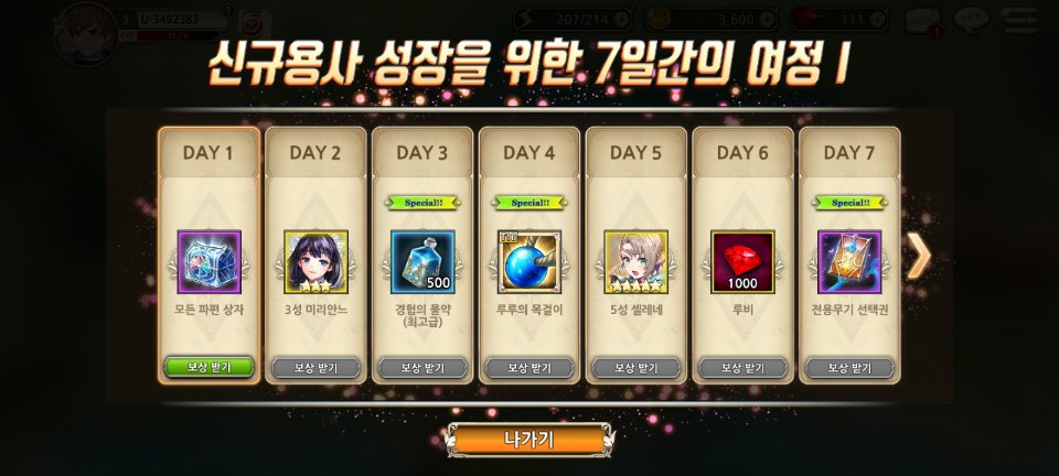다른 게임과 마찬가지로 킹스레이드에도 7일간의 접속 보상이 있습니다.