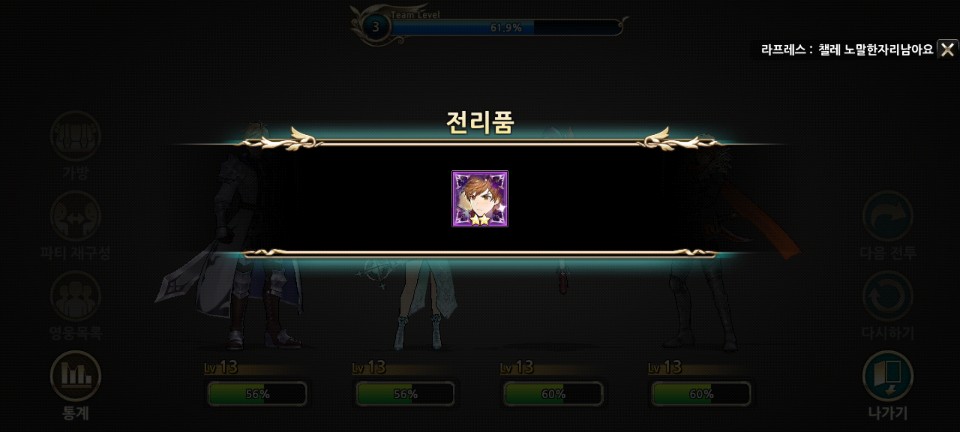 일단 챕터 1을 마친 것으로 킹스레이드의 30분 플레이를 마쳤습니다. (실제로는 두 시간)
