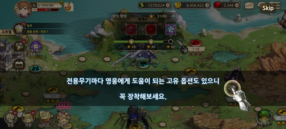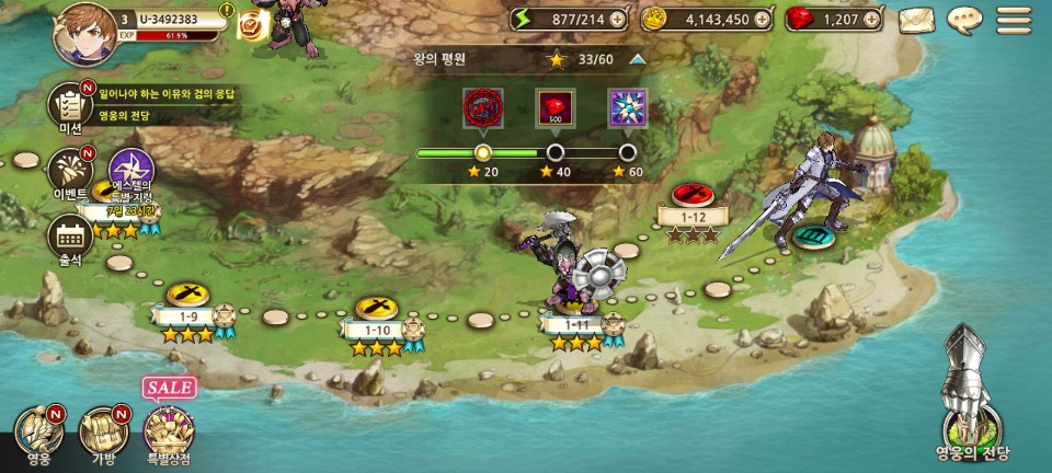 1-11을 클리어 하니 영웅의 전당이 해제되었습니다.