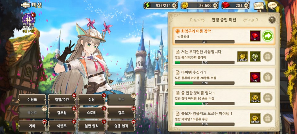 게임은 미션-이정표를 확인하면 쉽게 진행할 수 있습니다.