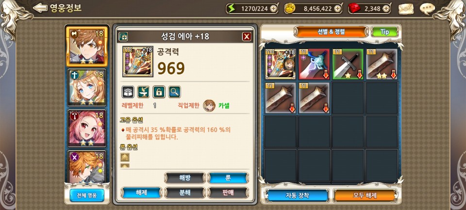 각 영웅에게는 전용 무기도 존재해서 고유의 옵션이 있습니다. 전용 무기가 등장하면 잊지 말고 장착해 주도록