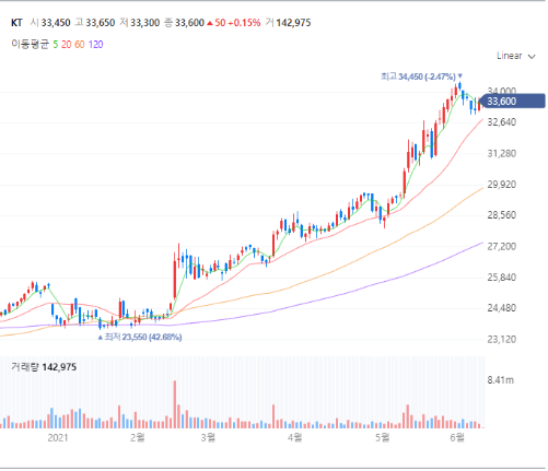 통신 3사와 함께 꾸준한 상승세인 KT는 야놀자와 사업 파트너를 맺었습니다.