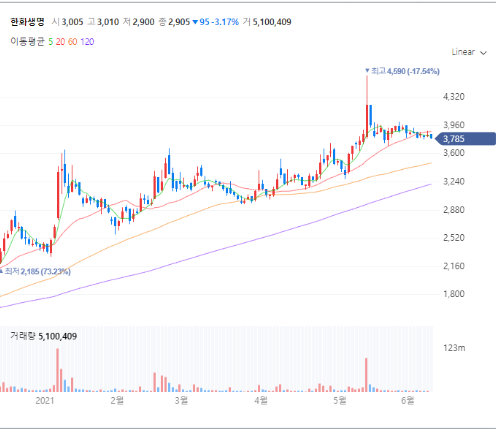 한화생명은 야놀자 관련주이기도 하지만 한화생명 자체의 기업가치도 좋다고 생각됩니다.
