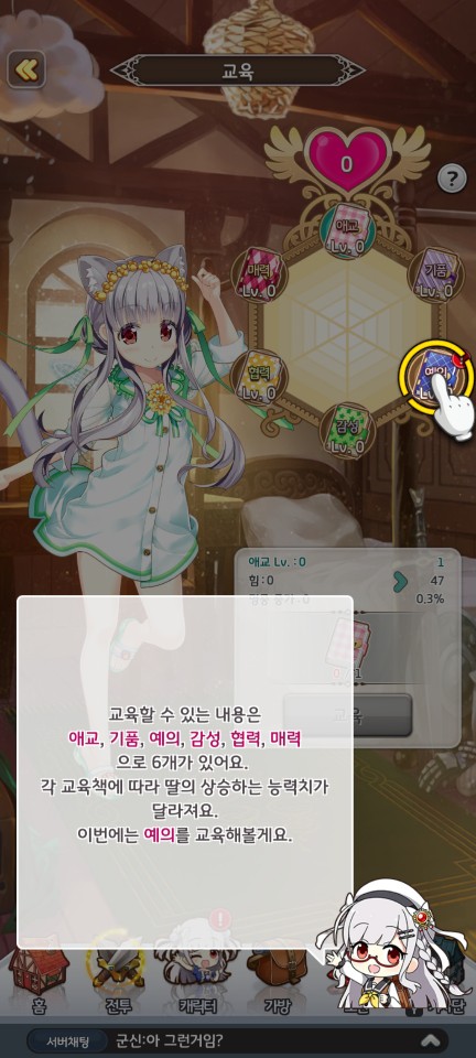 이렇게 교육을 통해서 딸과의 친밀도를 올려가면 상위 직업으로의 전직과 메인 스토리 진행이 가능해집니다.