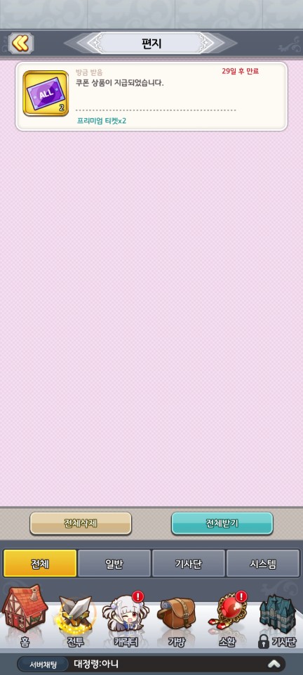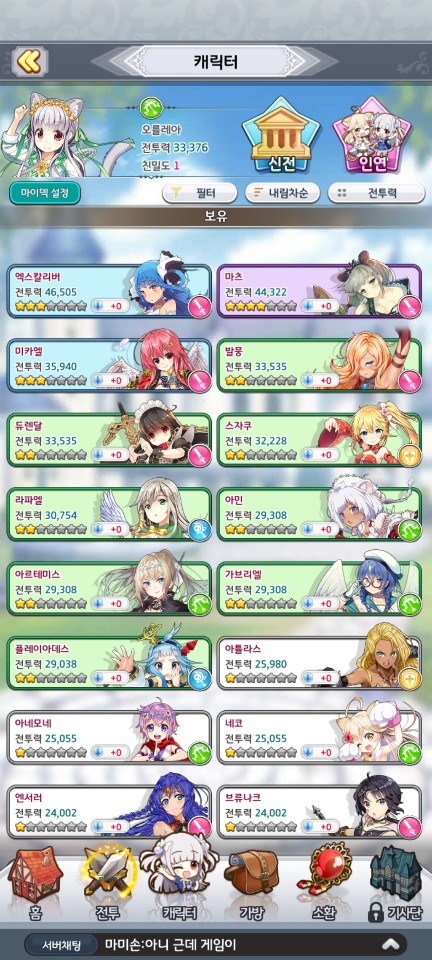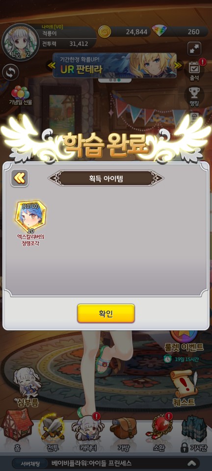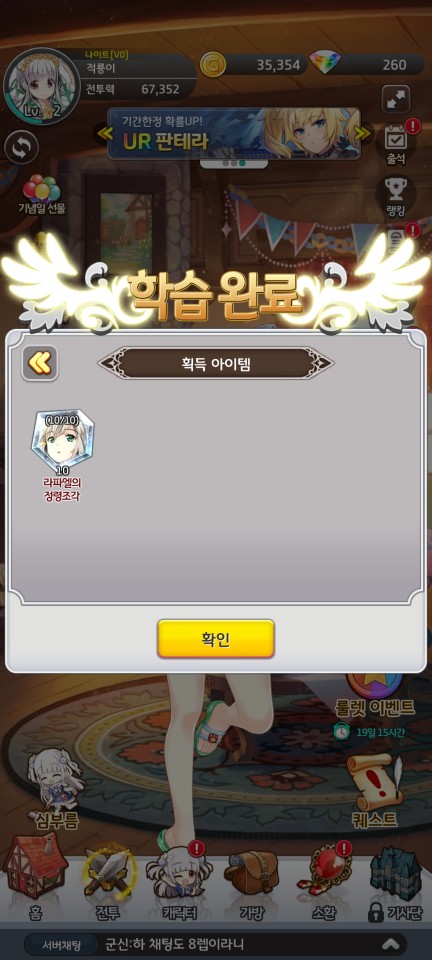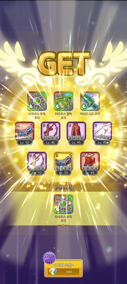이 정도 시점에서 보석과 뽑기권으로 2번 정도 고급 연속 소환이 가능합니다.
