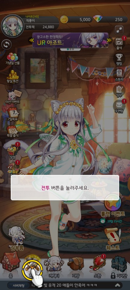 여기까지 진행을 하고 보니 드디어 수집형 RPG 게임의 꽃 소환이 가능하게 되었습니다.