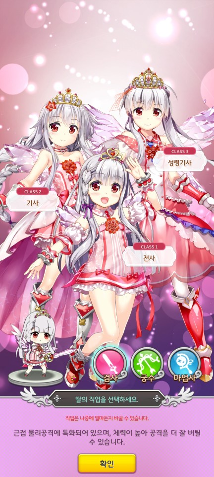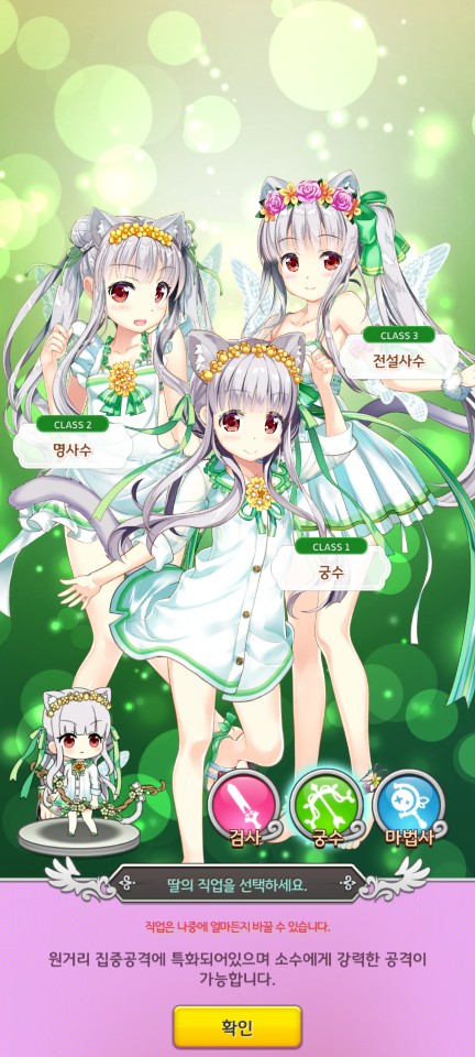 초기에 선택할 수 있는 직업은 검사, 궁수, 마법사입니다.