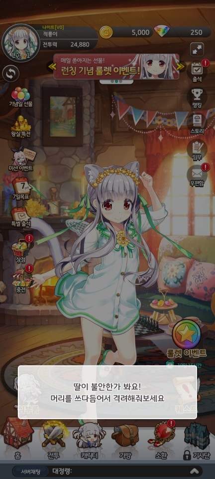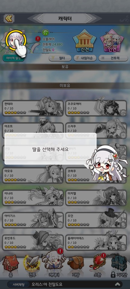 아이들 프린세스는 크게 전투와 딸의 친밀도를 올리는 두 가지로 나뉩니다.