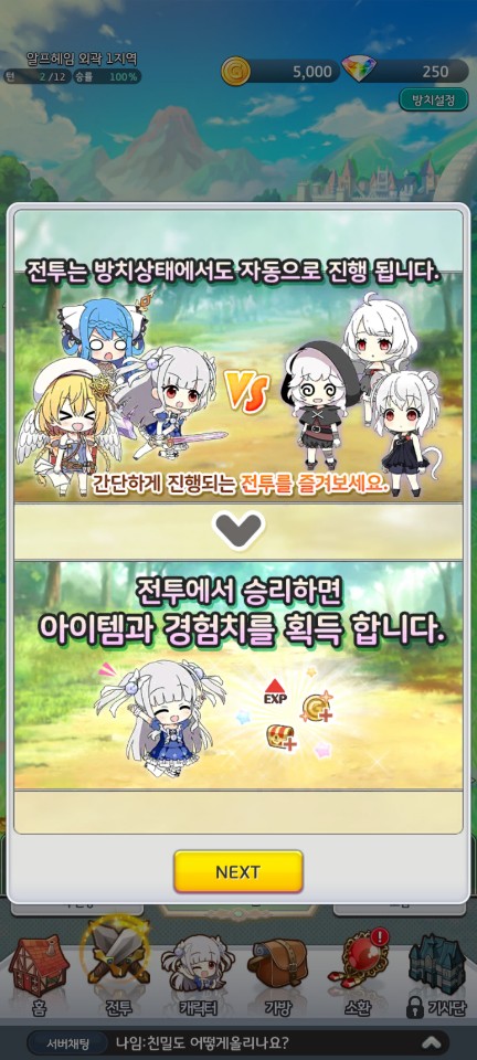 전투는 자동으로 진행됩니다. 방치 상태에서도 전투는 자동으로 진행돼서 아이템과 경험치를