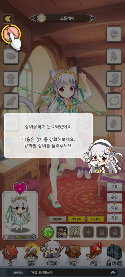 획득하게 됩니다. 전투에서 얻은 아이템으로 캐릭터를 강화시켜줍시다.