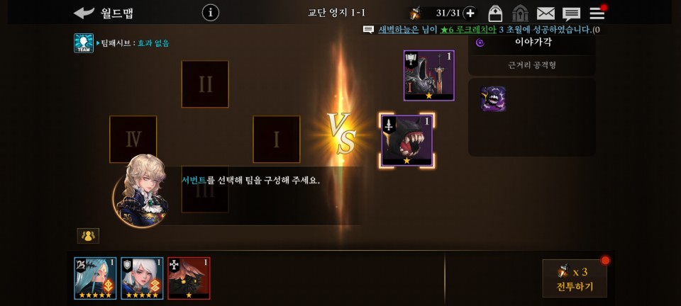 튜토리얼 전투가 끝나고 이제 실제로 게임을 진행하게 됩니다.