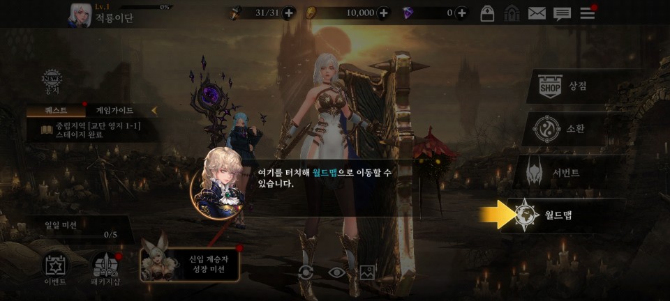 챕터 1장을 모두 끝내면 게임 가이드도 해제가 됩니다. 일일 미션이나 퀘스트 뿐만 아니라